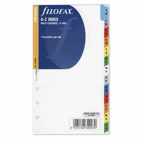 Personal Coloured A-Z Two Letter Index Tabs Refill features: