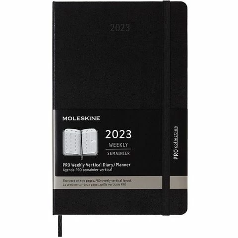 Keep track of your life in an elegant style with a Moleskine Pro Collection 2023 Weekly Vertical Diary/Planner. With a hardback cover, it includes a 2023 and 2024 overview plus global holidays and space for your journeys. Follow your monthly and weekly projects and tasks at a glace, along with your yearly goals and weekly contents page. Each page is also broken down, hour by hour – mark the red letter days with one of the complimentary stickers.