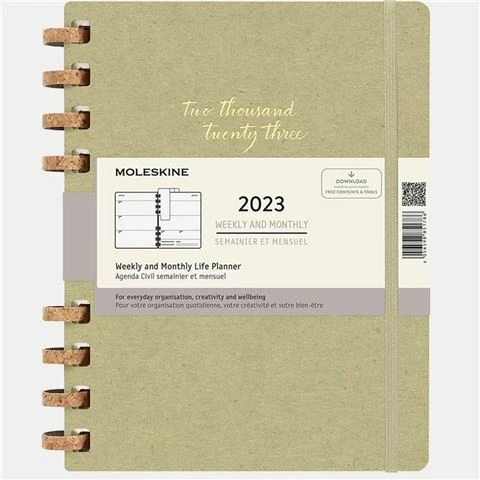 Keep track of your life in elegant style with the Moleskin 2023 Spiral Diary & Planner in Crush Olive. It’s so much more than a simple diary with its cork binding and gold toned script but something to be treasured. There’s lots of room to write down your goals and achievements, along with sections on self improvements.