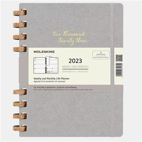 Keep track of your life in elegant style with the Moleskin 2023 Spiral Diary & Planner in Remake Smoke. It’s so much more than a simple diary with its cork binding and gold toned script but something to be treasured. There’s lots of room to write down your goals and achievements, along with sections on self improvements.